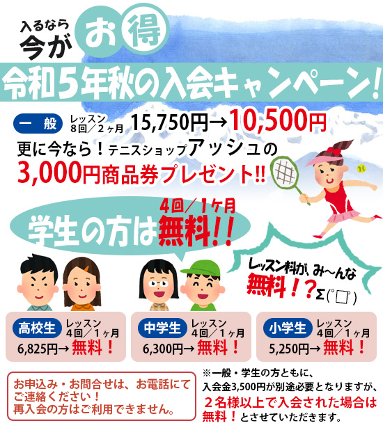入会するなら今がお得!秋からスタート応援キャンペーン!! new