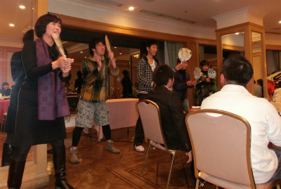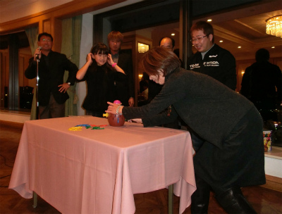 夜の忘年会もシーズンで忙しい中、約30名の参加をいただき、豪華景品? が当たる抽選会やゲーム大会で大いに盛り上がりました。