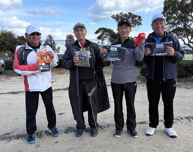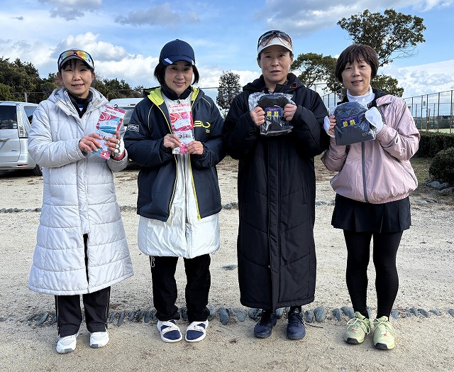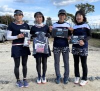 平日にもかかわらず参加いただいた10組20名の出場者が強風に負けず熱戦を繰り広げました。 出場者の皆様、お疲れ様&ありがとうございました。 〈女子A〉 優勝:平野・土野 準優勝:村上・酒井 〈女子B〉 優勝:高須賀・吉川 準優勝:石川・森 〈男子〉 優勝:梶・武智 準優勝:藤倉・光藤 ※画像はクリックで拡大します。 ※画像データをご希望の方は、送付可能なアドレスからメールでご連絡ください。 (ただし本人またはご家族の方に限らせていただきます)