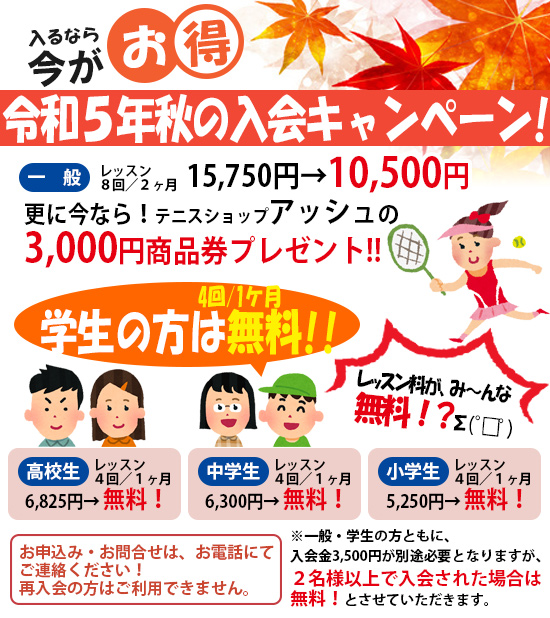 入会するなら今がお得!秋からスタート応援キャンペーン!! new